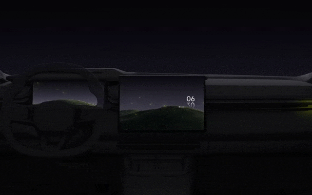 在「小憩模式」下,车机屏幕内的萤火虫仿佛被赋予了生命,它们与氛围灯之间展开了一场梦幻般的互动。萤火虫在屏幕上忽明忽暗地飞舞,与氛围灯的光影变化相互呼应,营造出一种宁静而神秘的氛围。