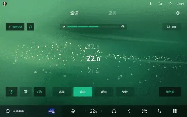 智能座舱氛围灯还会根据车内空调的温度变化产生不同的动态效果,从而带给车内用户全新的感官体验。当空调温度调高,氛围灯会呈现出温暖而柔和的色彩,如同夕阳下的柔和光线,为驾乘者带来舒适与宁静。而当温度调低时,氛围灯会转变为清爽的蓝色或绿色,如同山间清泉般带来一丝凉意,让人感受到清爽与活力。